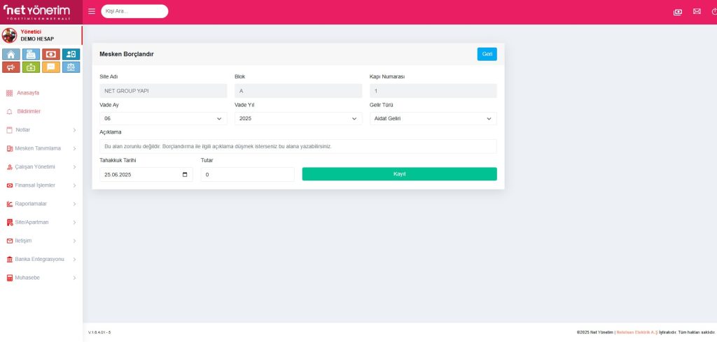 - Tüm bilgileri girdikten sonra, Kayıt butonuna basarak borçlandırma işlemini tamamlayın.