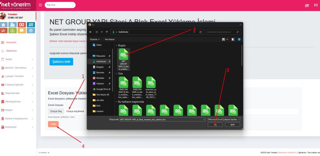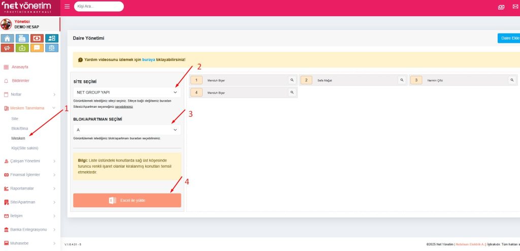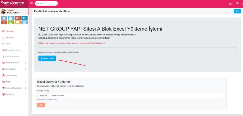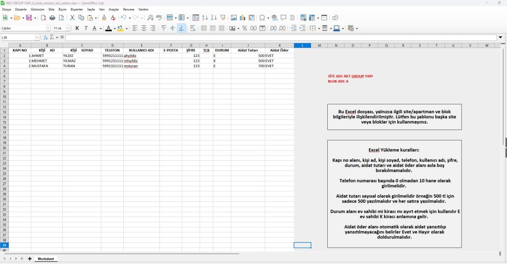Net Yönetim – Excel ile Toplu Mesken ve Kişi Ekleme Dokümantasyonu