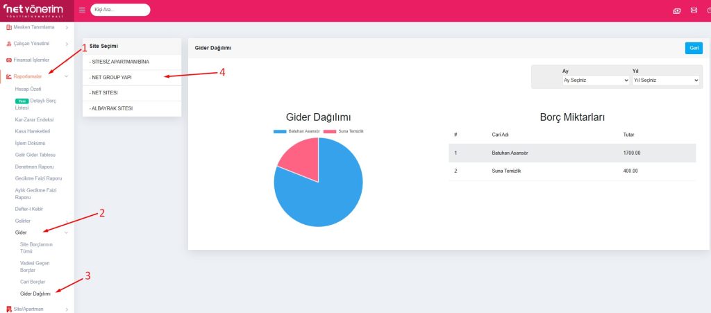 Net Yönetim – Gider Dağılımı Raporu Kılavuzu