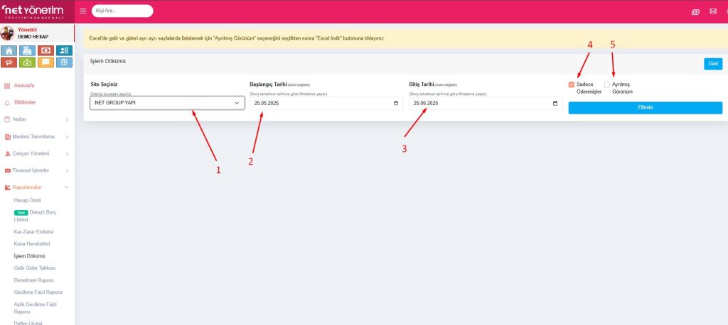 Net Yönetim – İşlem Dökümü Raporu Kılavuzu